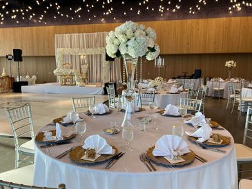 We decorate any space or venue with elegant draping, lighting, and custom decor.
